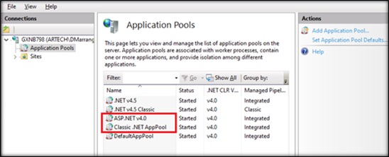 To do so, select Add Application Pool (in the panel on the right) and enter the users: