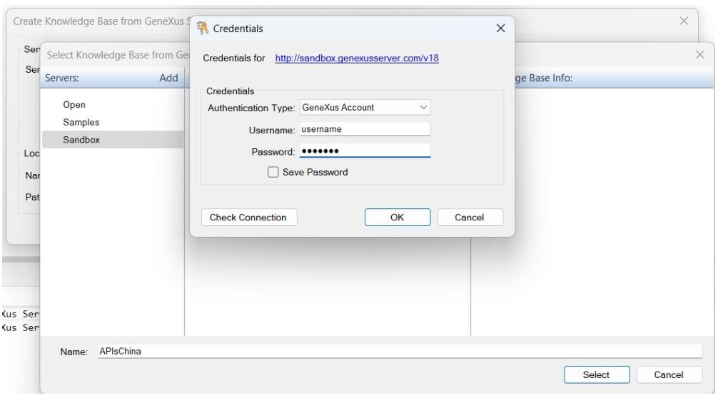 - Indicate your GeneXus account for authentication