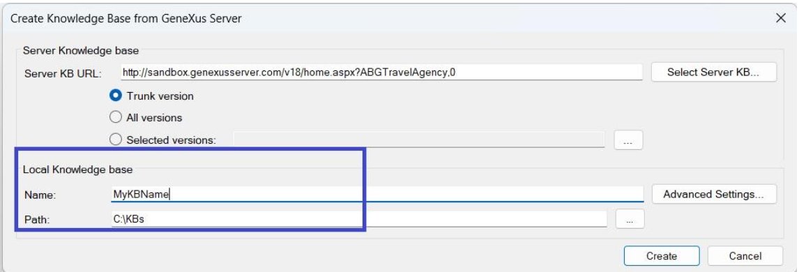 - Indicate the name with which you want to receive the local copy of the KB. Press Create: