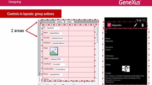 Introduction to the Group control, for grouping actions to offer them as deployable menus. Review of units for size: percentage, dip, pd. Review of options for image scaling and how they are done. Introduction of the new “9 Patch” option.