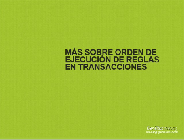 GeneXus determina que execute cada regra definida em uma transação, no primeiro momento em qual tem todos os valores envolvidos para executá-la. A maioria das vezes, as regras são executadas no momento que pretendemos. No entanto em alguns casos, temos a necessidade de modificar o momento de disparo de alguma regra. Aqui serão ensinados momentos de disparo que podem ser adicionados as regras de transações, assim o exigir.